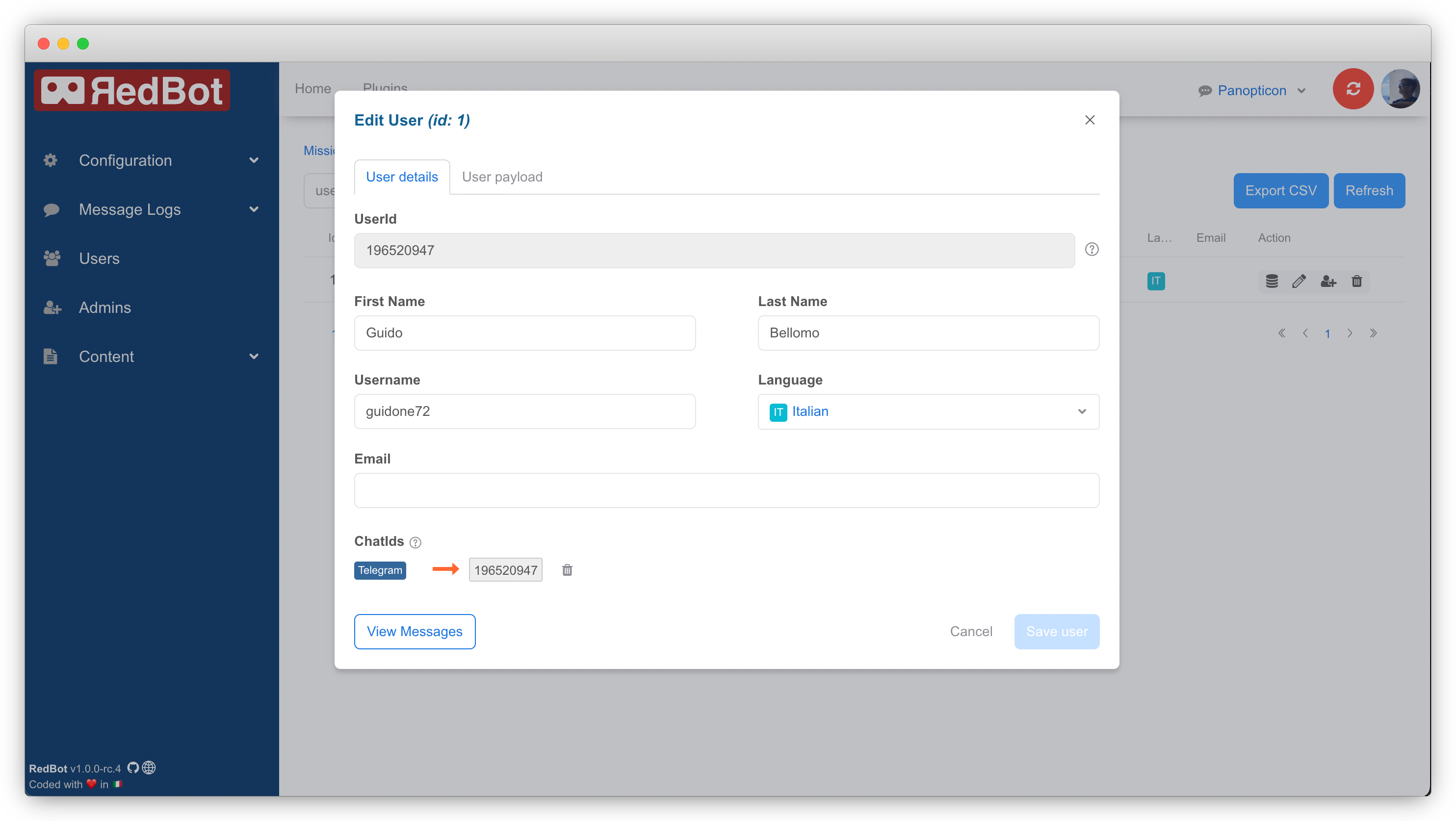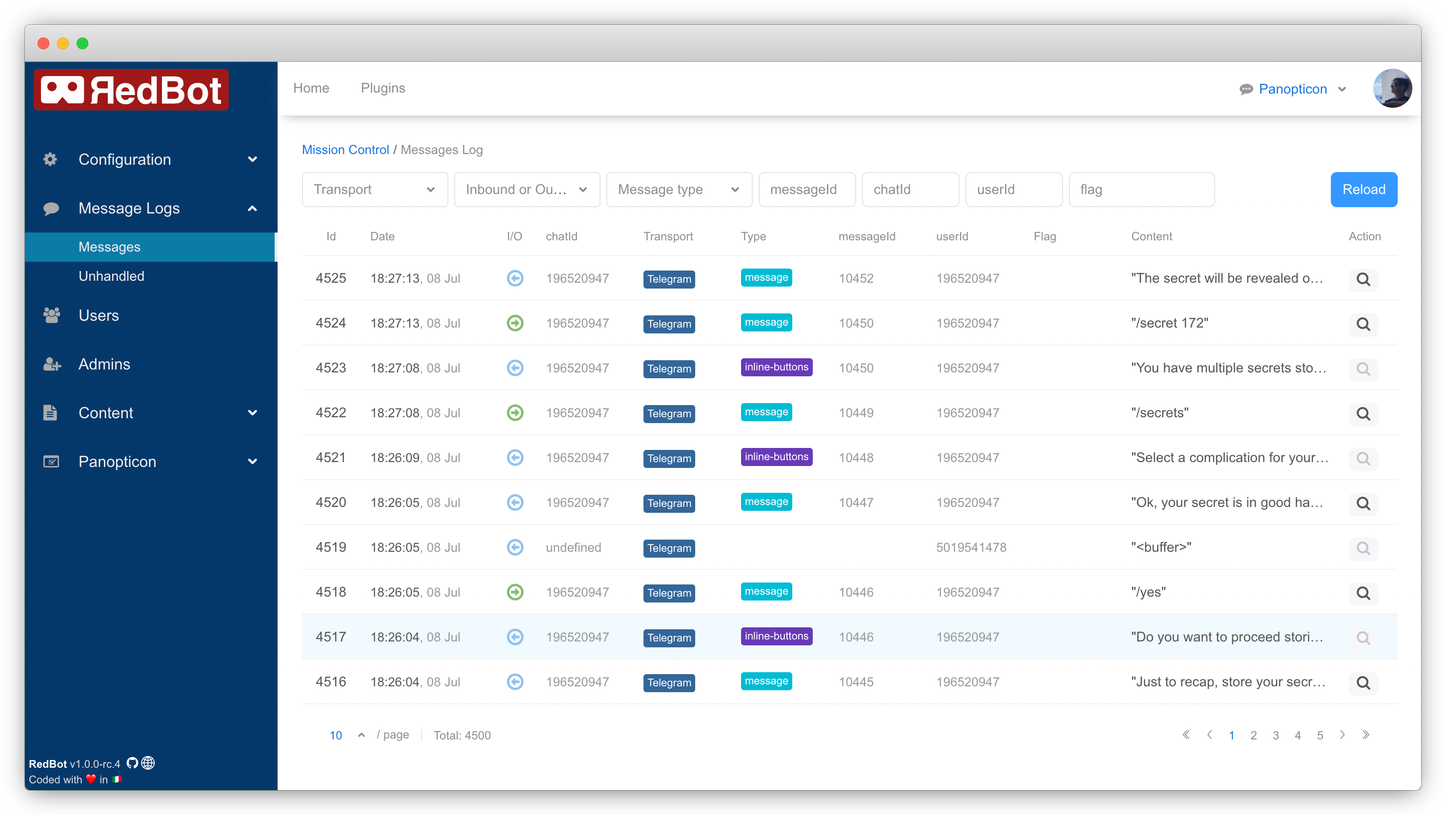 Mission ControlMission Control is a persistance layer and an extensible control panel to admin your chatbots: browse and edit user's details, read the message history, troubleshooting with the simulator, etc